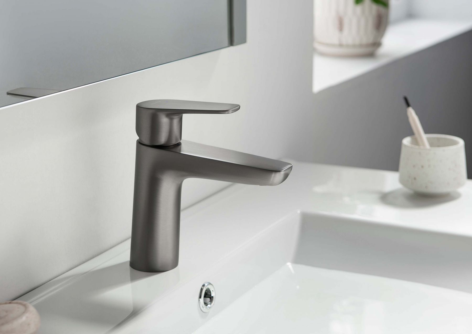 AQ1110BGM БЕТТА смеситель для раковины 98, без донного клапана, оружейная сталь