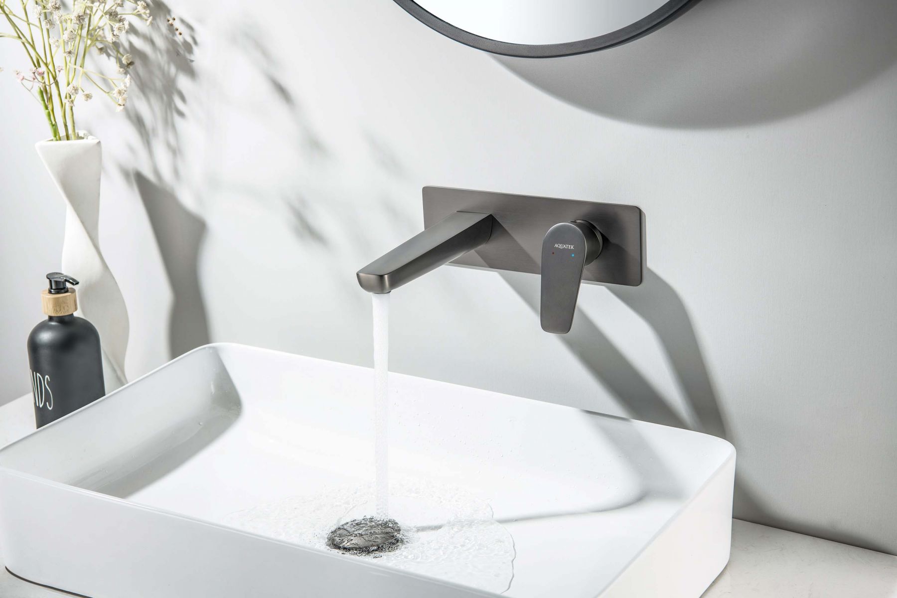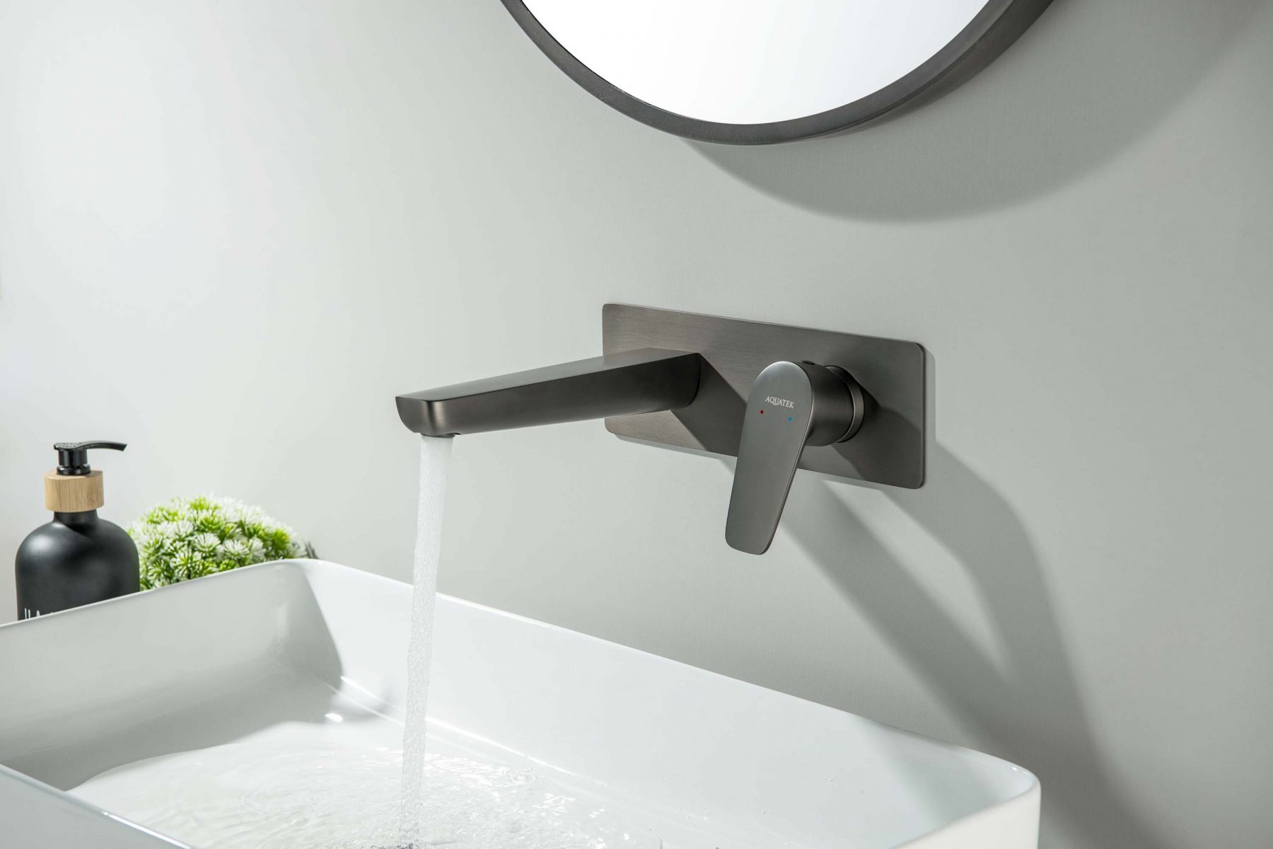AQ1113BGM БЕТТА смеситель для раковины настенный (внешняя и скрытая часть), оружейная сталь