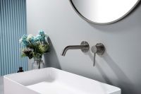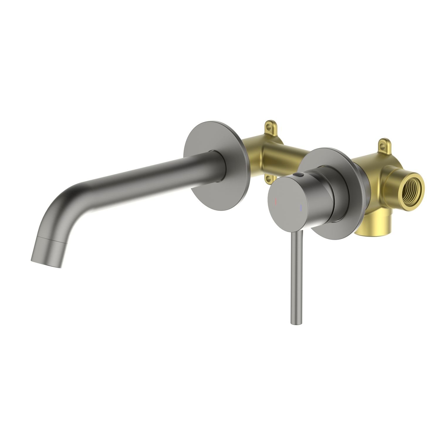 AQ1313BGM ЕВРОПА смеситель для раковины настенный 2 отв. (внешняя и скрытая часть), оружейная сталь