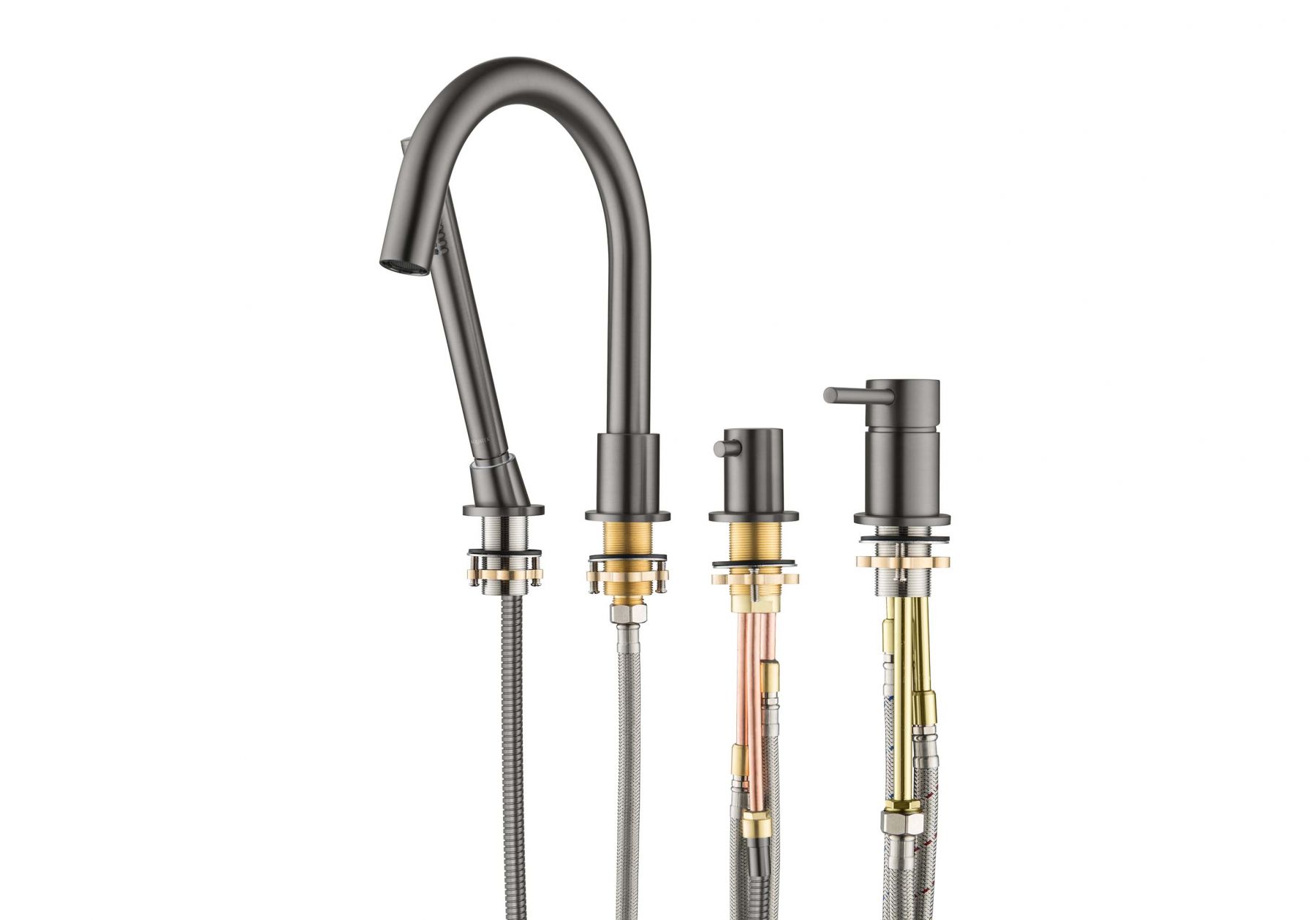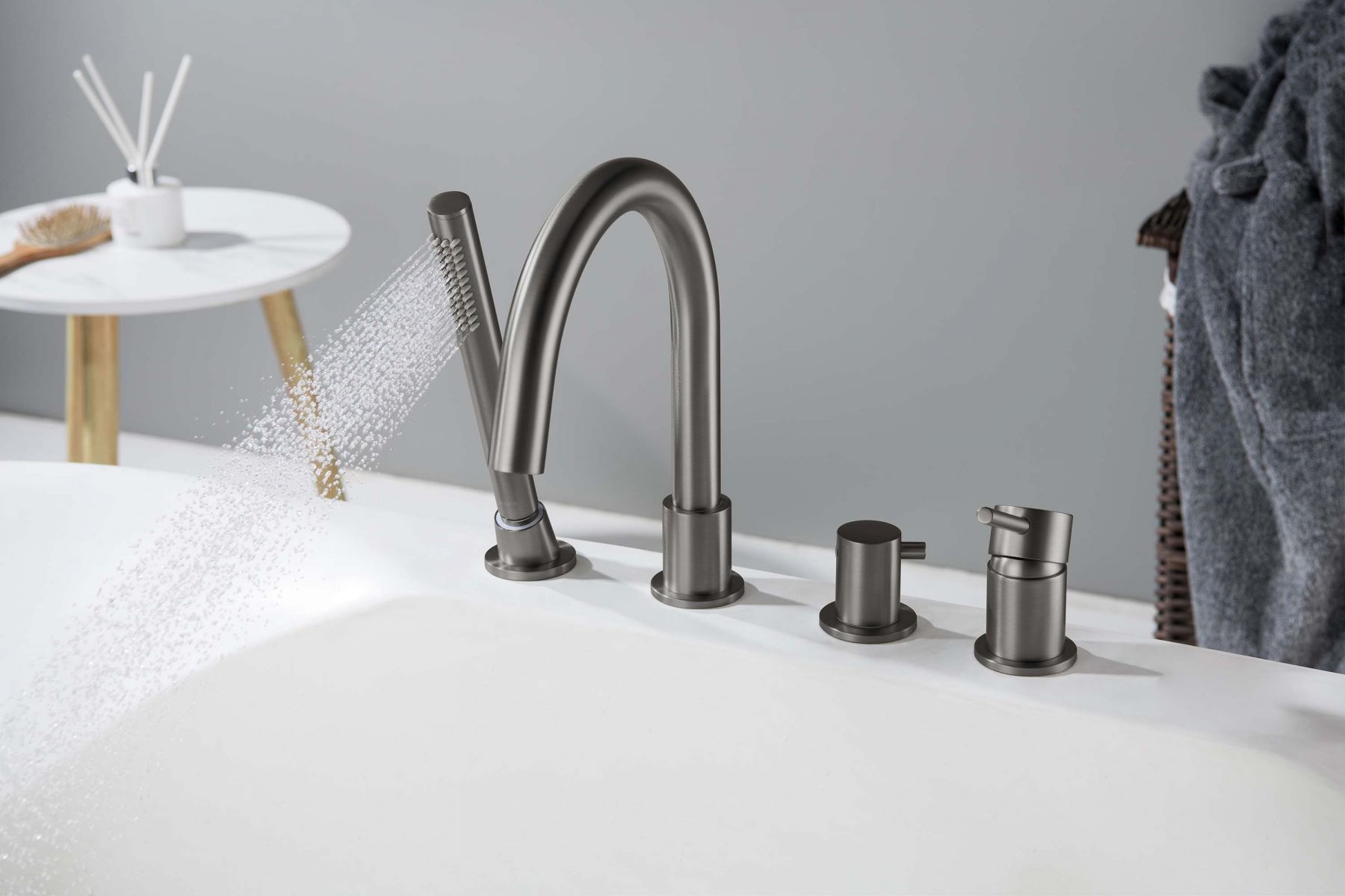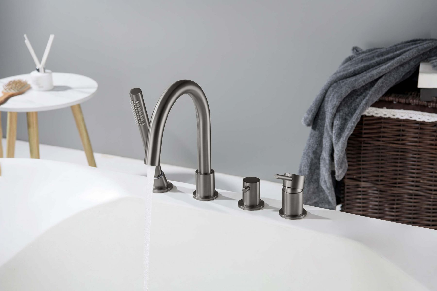 AQ1348BGM ЕВРОПА смеситель на борт ванны на 4 отв., оружейная сталь