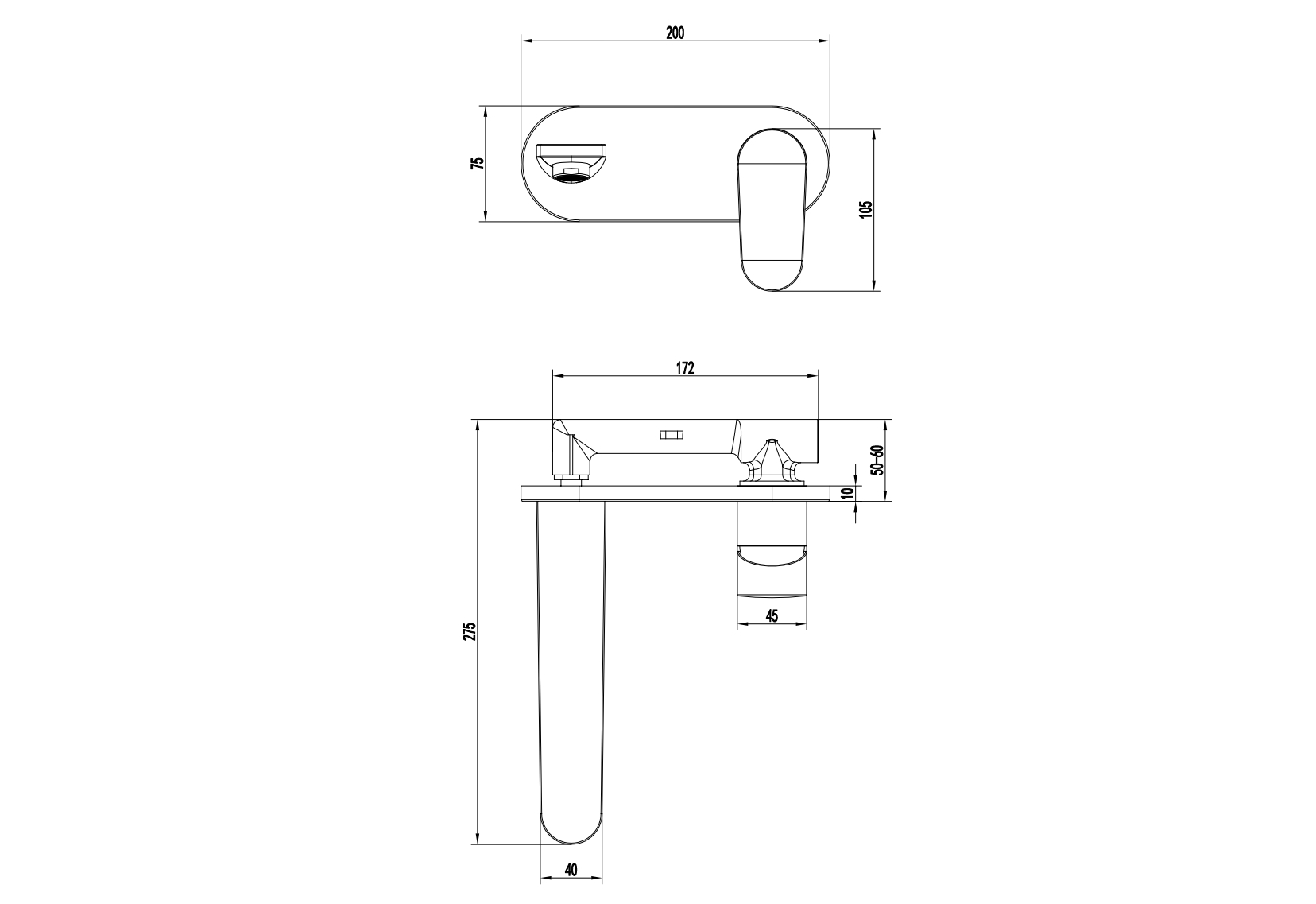 AQ1813MB НИКА смеситель для раковины настенный (внешняя и скрытая часть), матовый черный