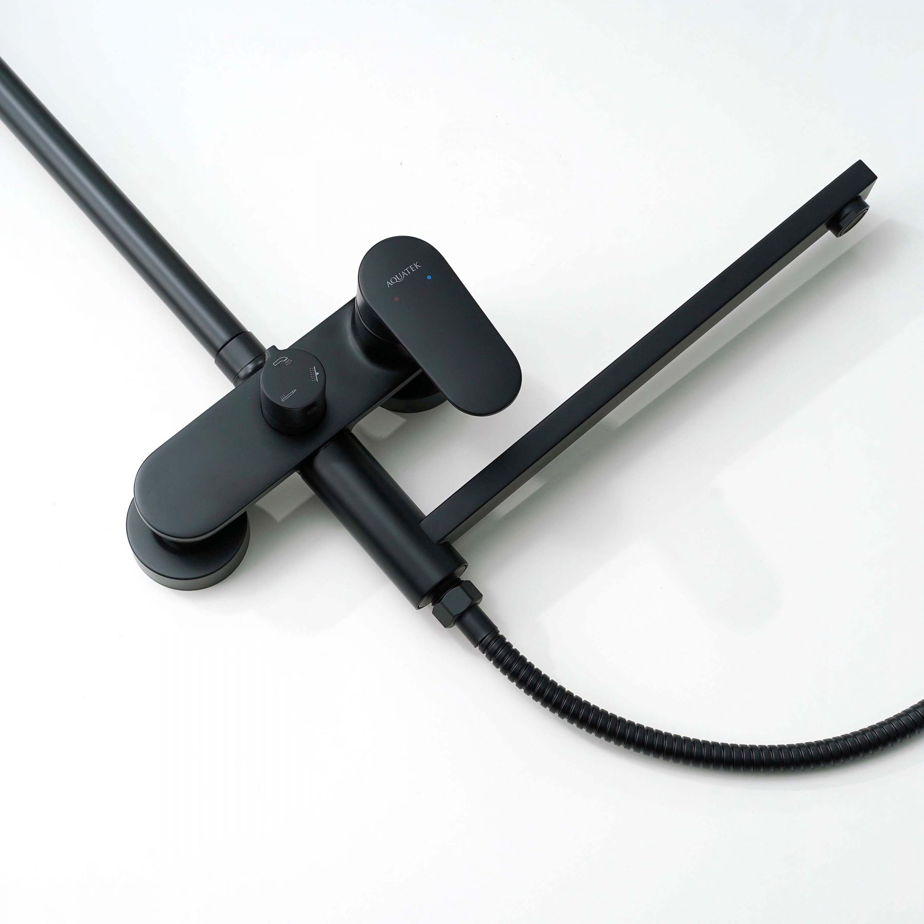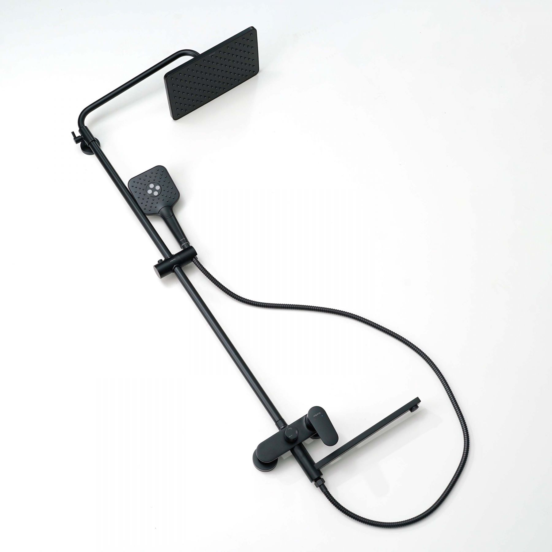 AQ2840MB НИКА душевая система (смеситель для ванны) 3 jet 300х193 мм с длинным изливом, матовый черный
