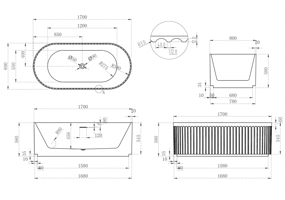 Акриловая ванна ABBER AB9410-1.7 белая