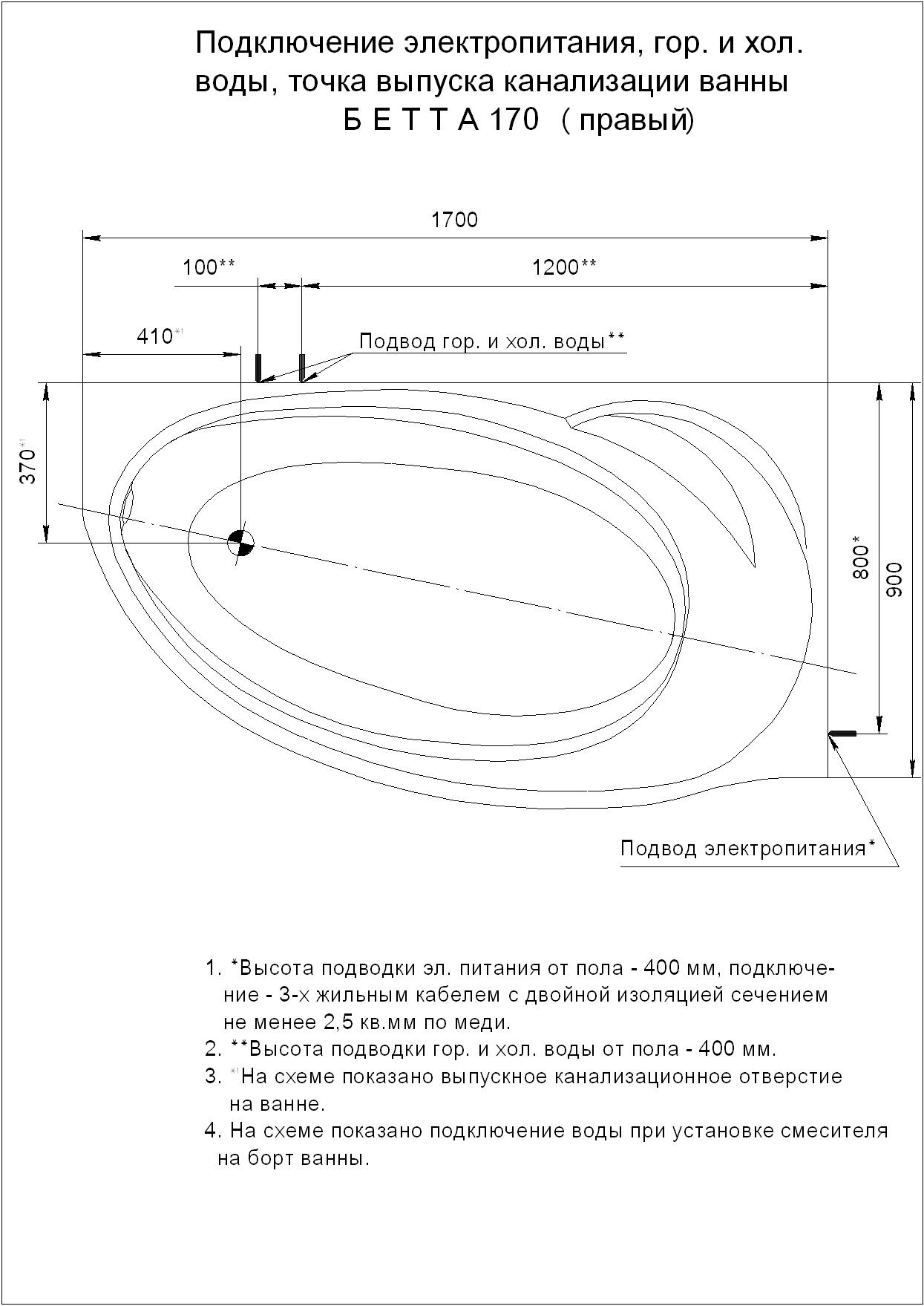 Акриловая ванна Aquatek Бетта 170 левая, без каркаса, без экрана, без гидромассажа