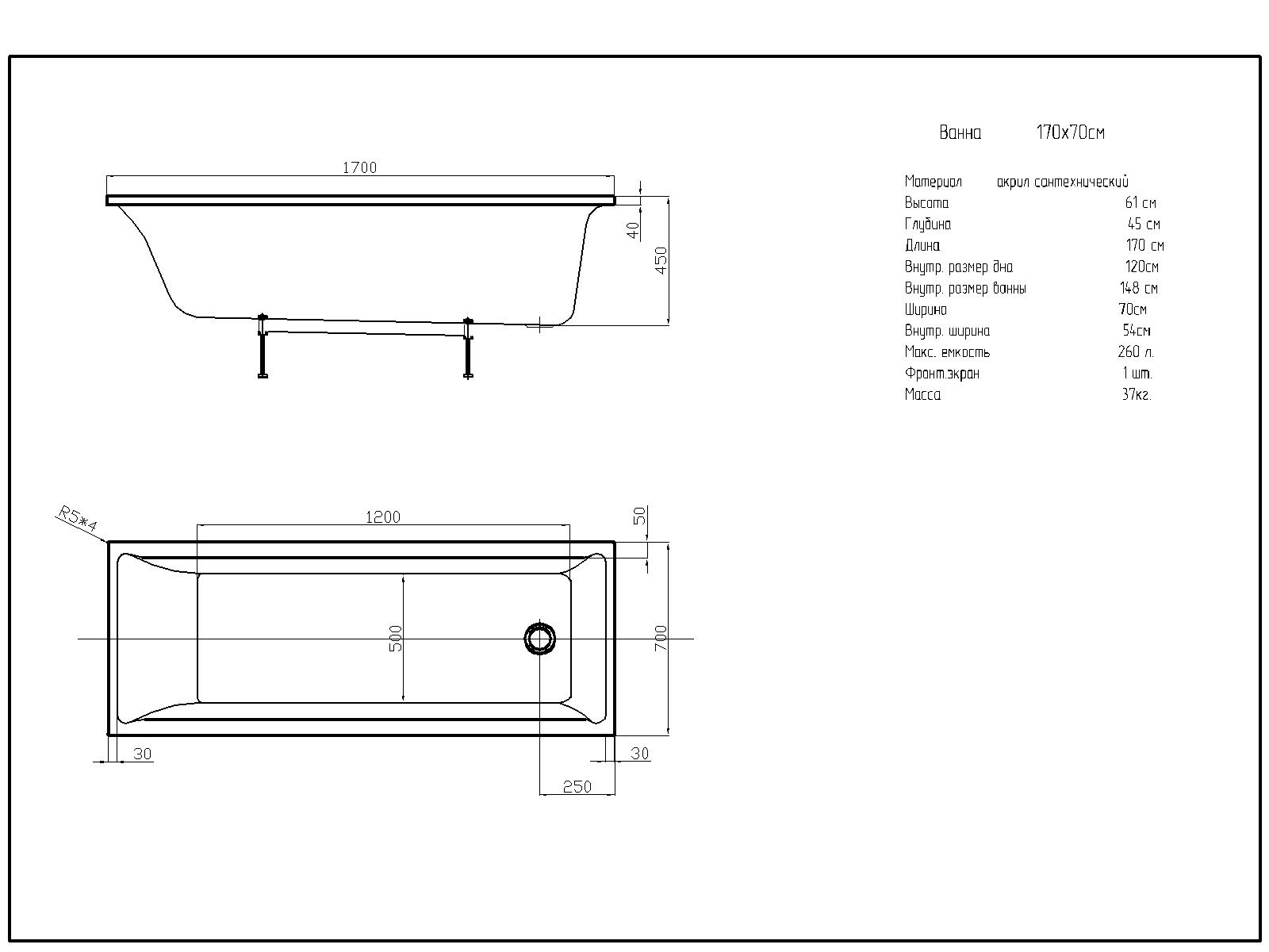 Размер, см (д*ш) 170x70