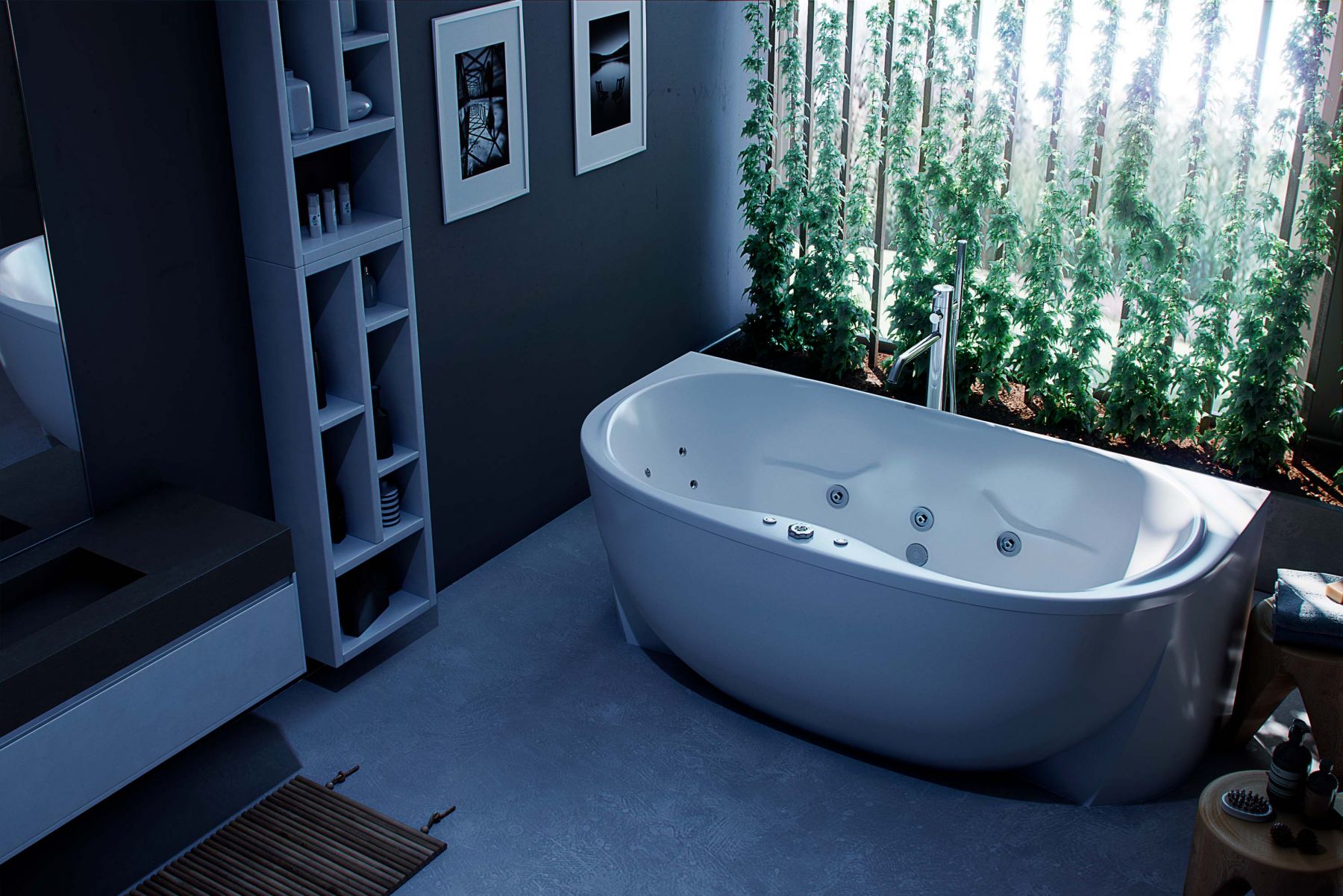 Акриловая ванна Aquatek Мелисса 180x95 радиусная, универсальная, с каркасом и экраном, без гидромассажа