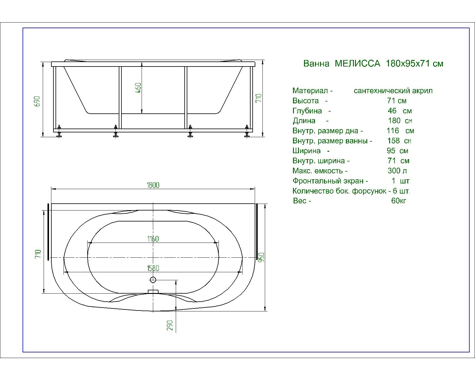 Размер, см (д*ш) 180x95