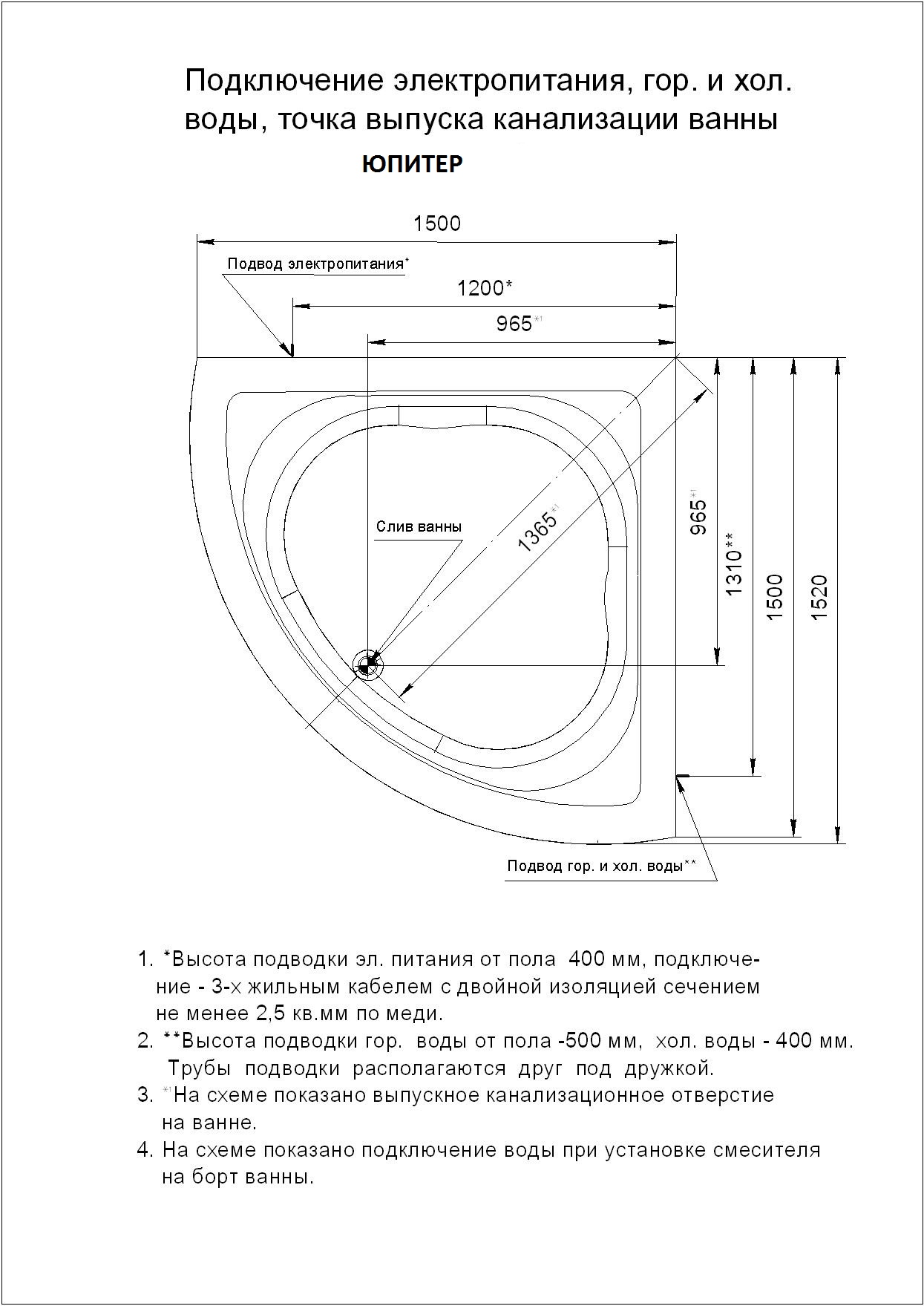 Акриловая ванна Aquatek Юпитер 150x150 угловая, универсальная, с каркасом и экраном, без гидромассажа