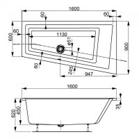 Акриловая ванна VAGNERPLAST CAVALLO OFFSET 160x90 Right