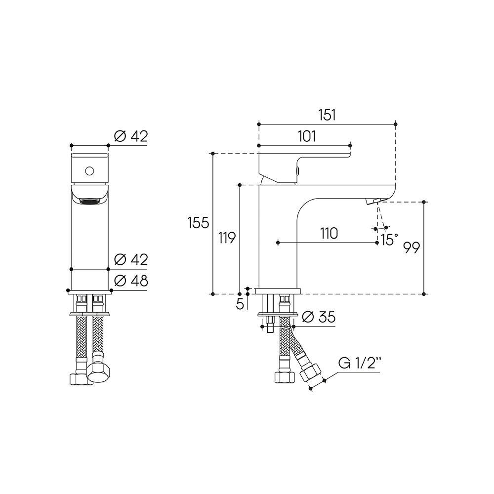 Aqueduto BASE Смеситель для раковины M, хром