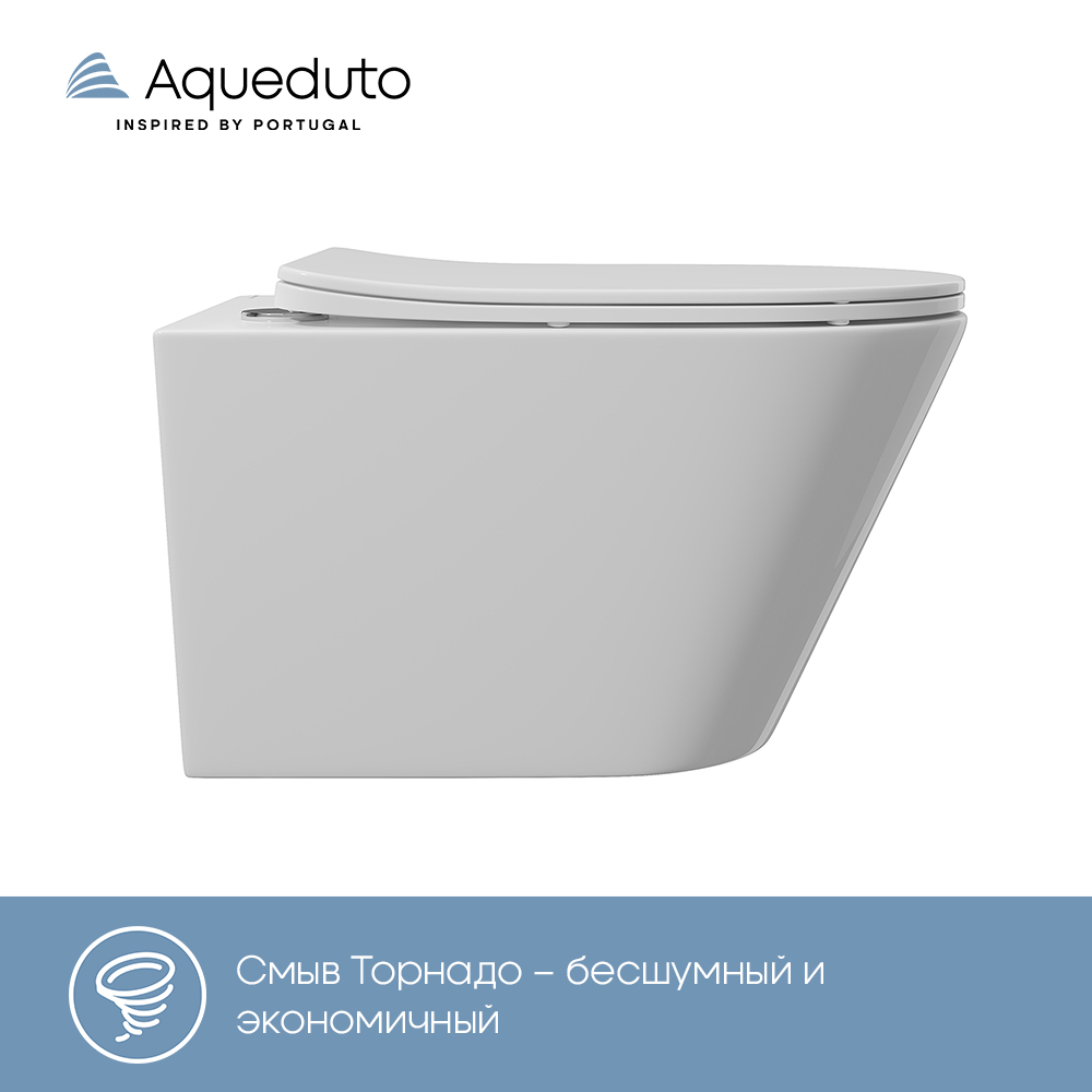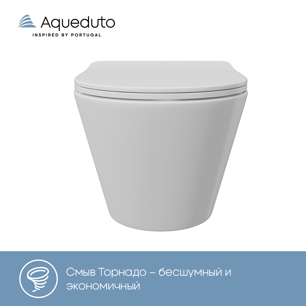 Aqueduto CONE Tornado Унитаз подвесной 525*360 безободковый, Tornado, сиденье с микролифтом, белый глянцевый