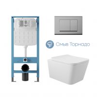 Aqueduto комплект: TECNICA Novo Система инсталляции для подвесного унитаза, QUADRADO Панель смыва, хром, MACIO Tornado Унитаз подвесной 520*370 безободковый, Tornado, сиденье с микролифтом, белый глянцевый