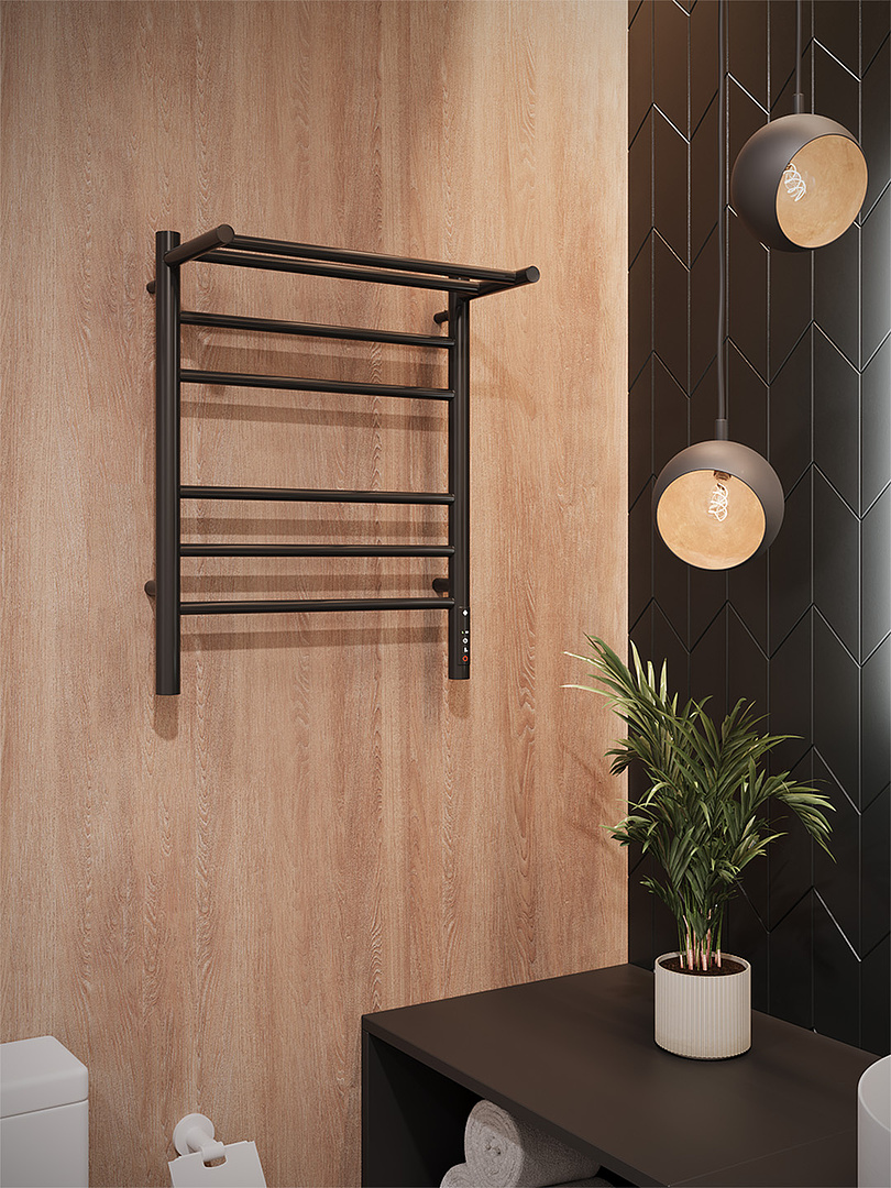 Аврора с/п П6 450х600 электро КС ЧЕРНЫЙ МУАР ( new встроен диммер) Полотенцесушитель TERMINUS