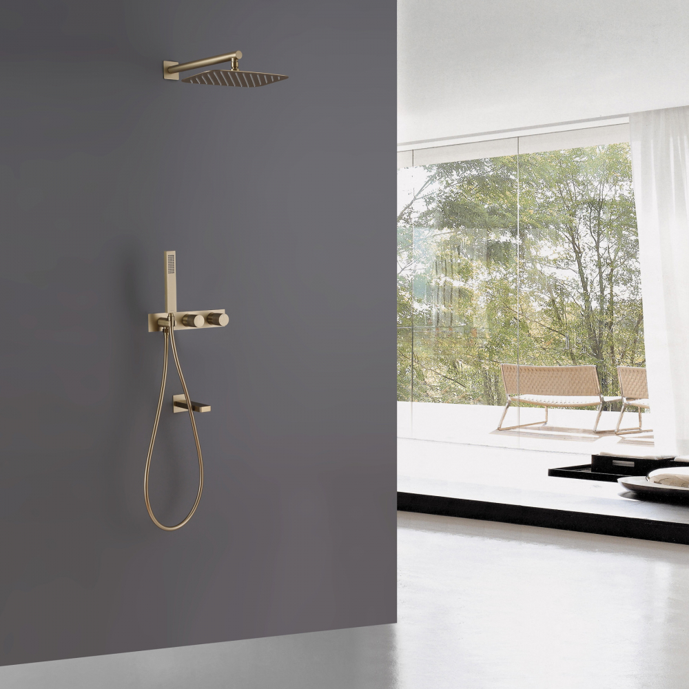 Душевая система ABBER Rund AF8717G скрытого монтажа с изливом, золото матовое
