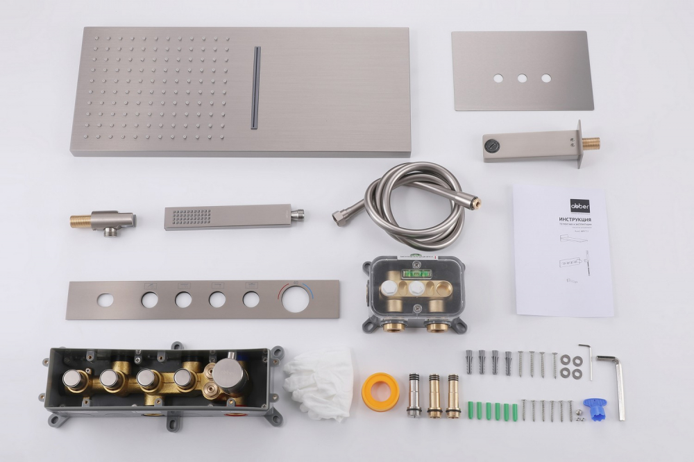 Душевая система ABBER Rund AF8753SP скрытого монтажа с изливом, термостат, сатин