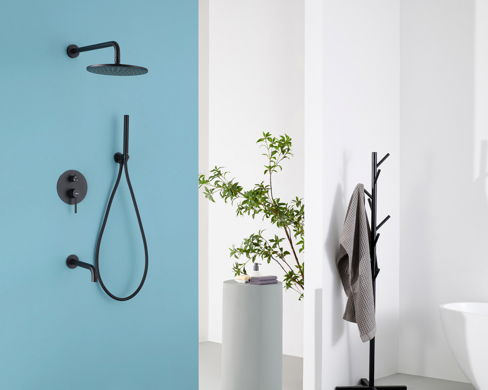 Душевая система ABBER Wasser Kreis AF8117B скрытого монтажа с изливом, черная матовая
