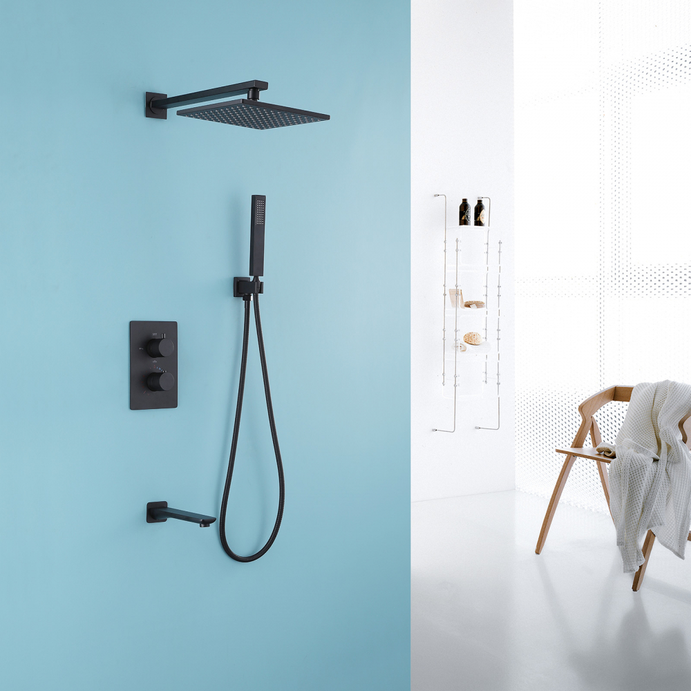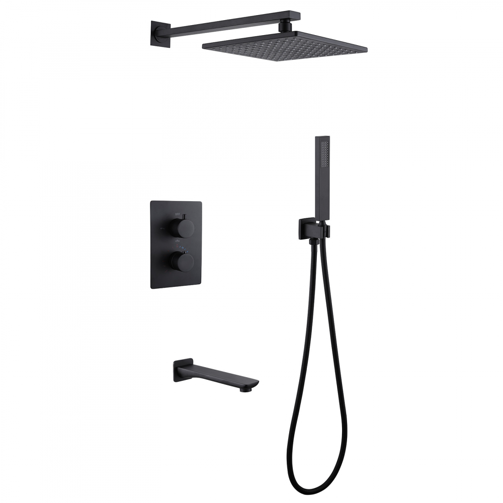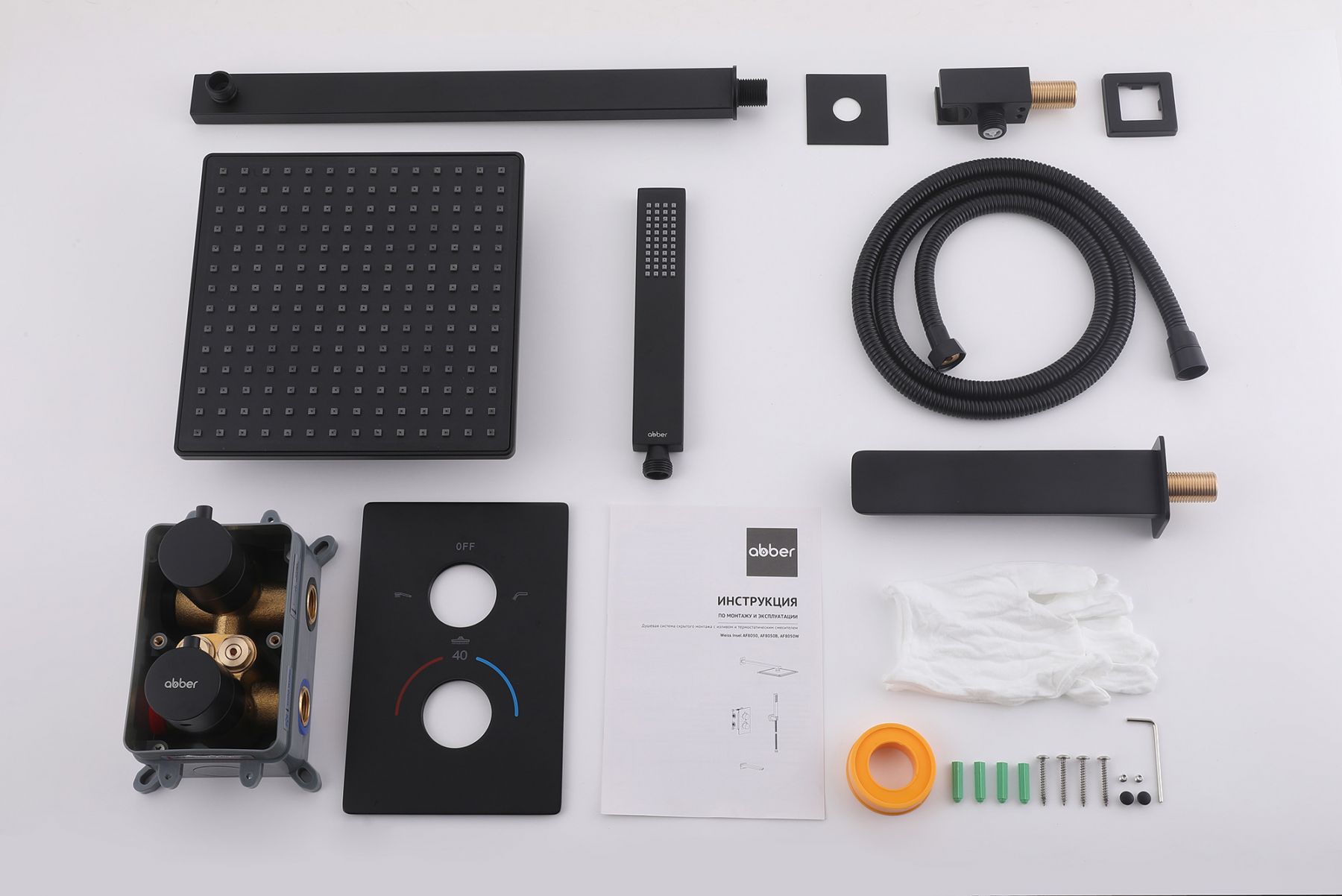 Душевая система ABBER Weiss Insel AF8050B скрытого монтажа с изливом, термостат, черная матовая