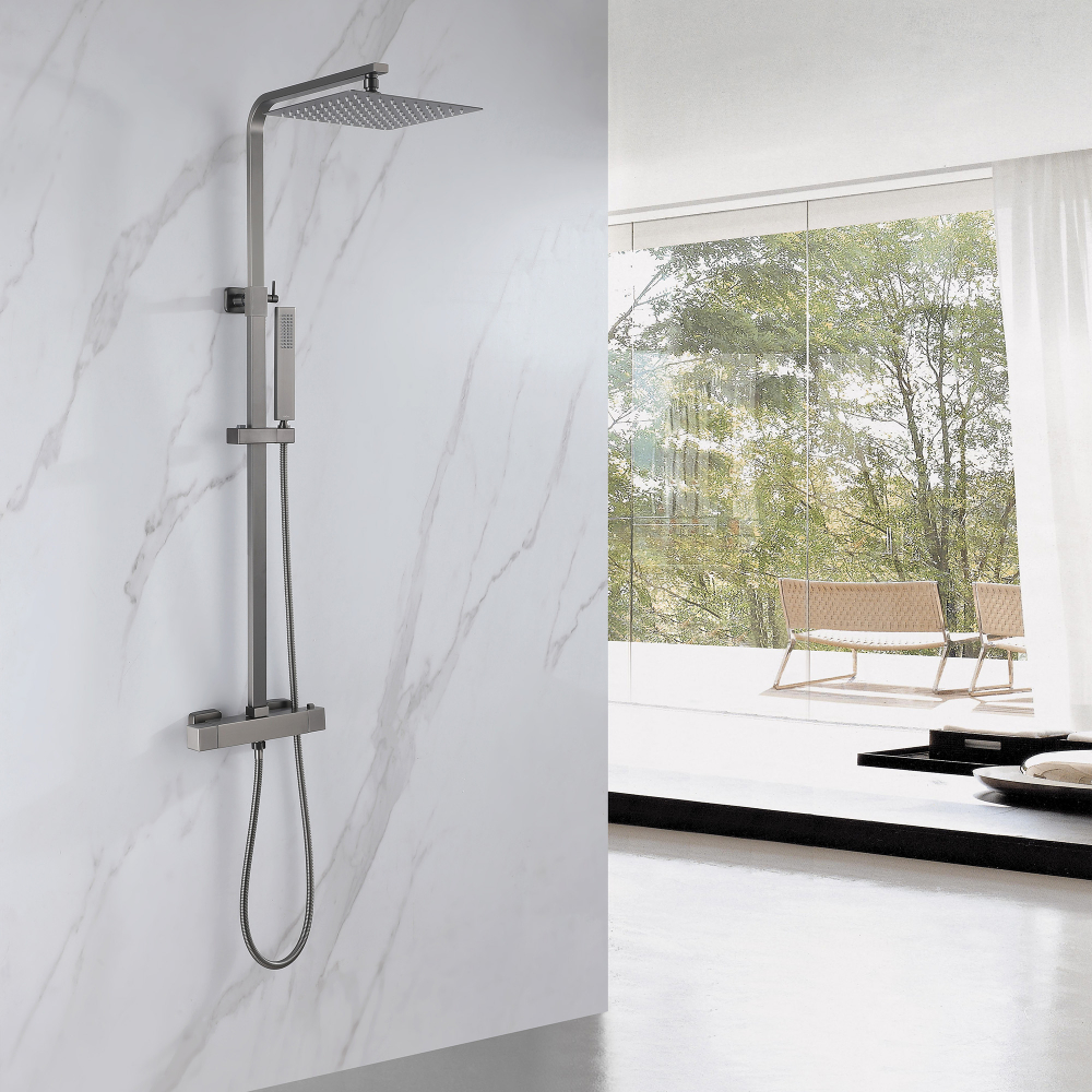 Душевая стойка ABBER Daheim AF8260NGL с термостатом без излива, Никель