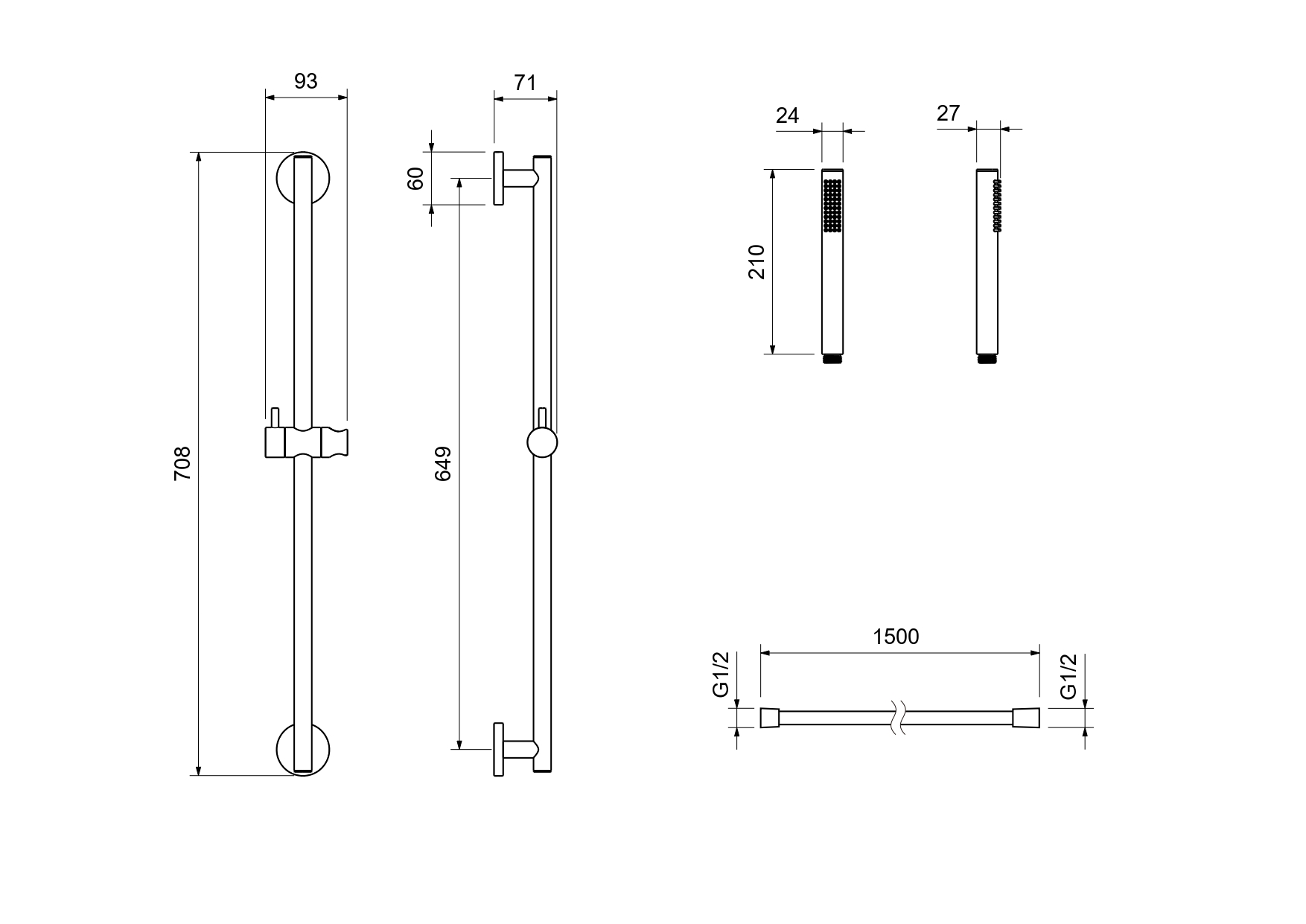 Душевой гарнитур 1jet 65 см AQUATEK, матовый черный AQ2012MB ЕВРОПА