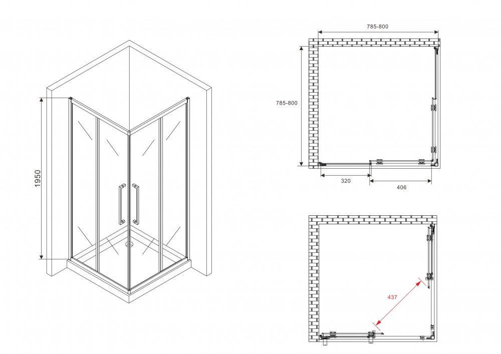 Душевой уголок ABBER Schwarzer Diamant AG02080H
