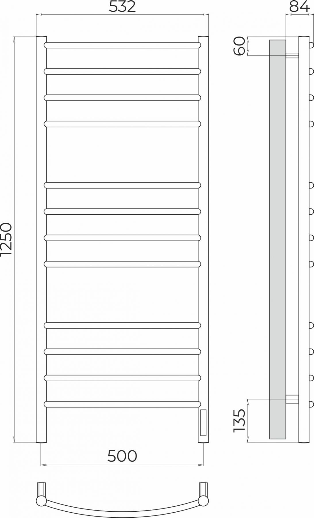 Классик П12 500х1250 Электро (quick touch) Полотенцесушитель TERMINUS