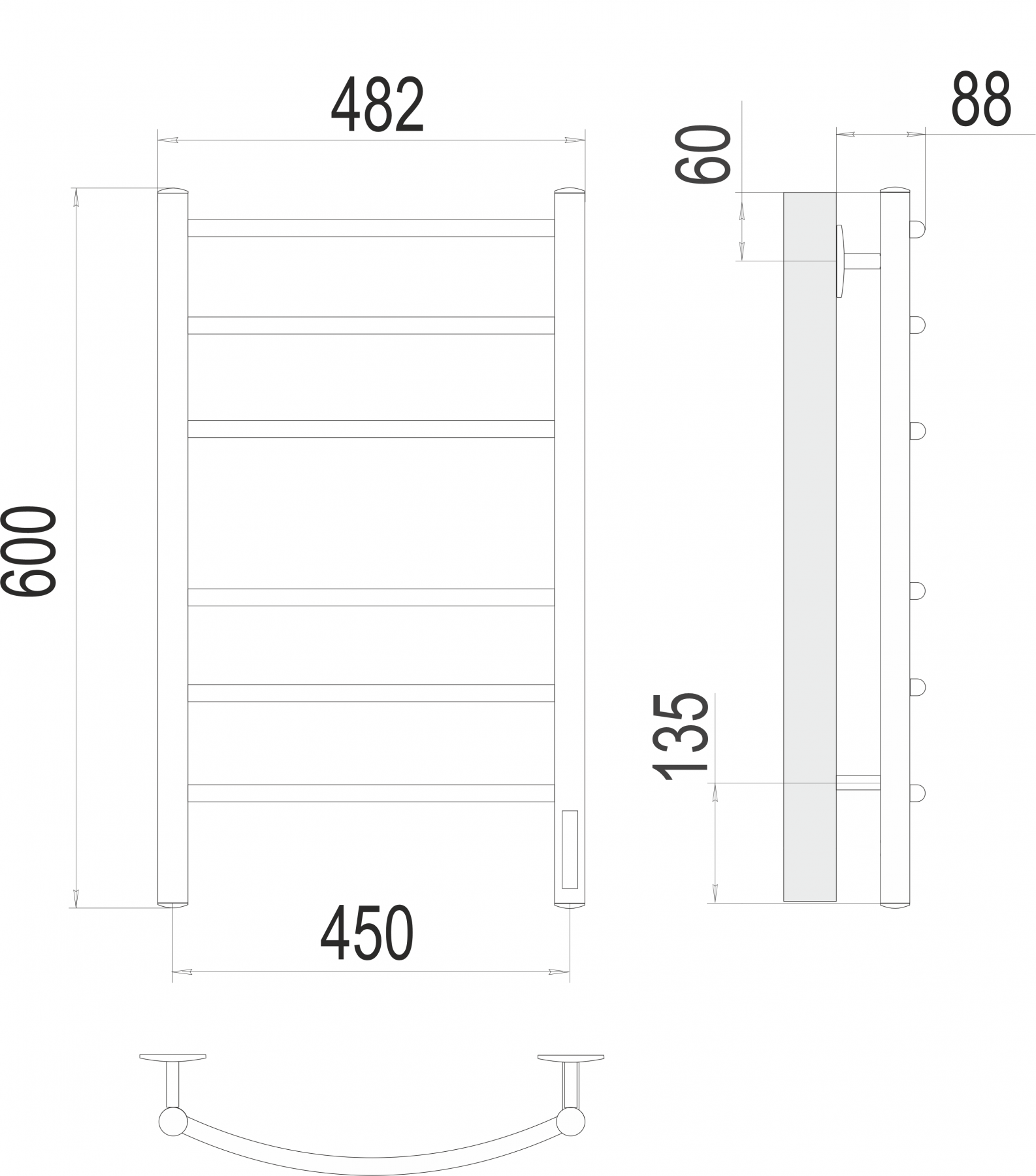 Классик П6 450х600 электро КС 9003 матовый ( new встроен диммер) Полотенцесушитель TERMINUS