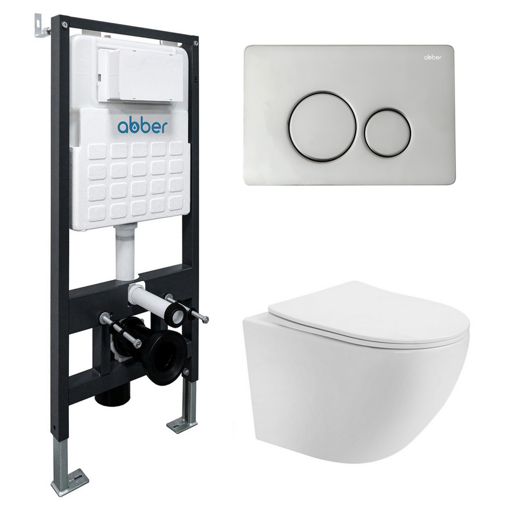 Комплект подвесной унитаз ABBER Bequem AC1100T белый с инсталляцией AC0105 и кнопкой AC0121 хром