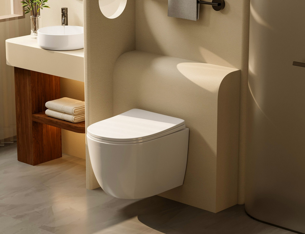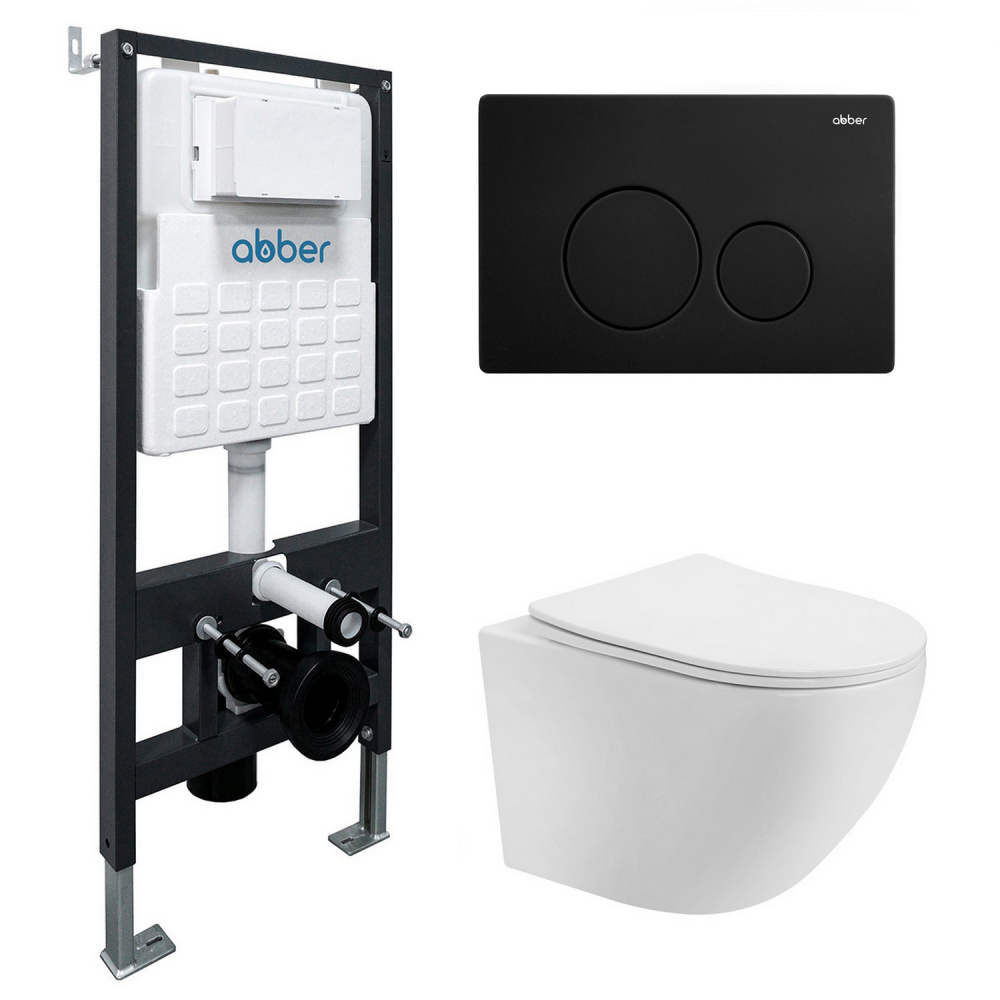 Комплект подвесной унитаз ABBER Bequem AC1100T белый с инсталляцией AC0105 и кнопкой AC0121MB черный матовый