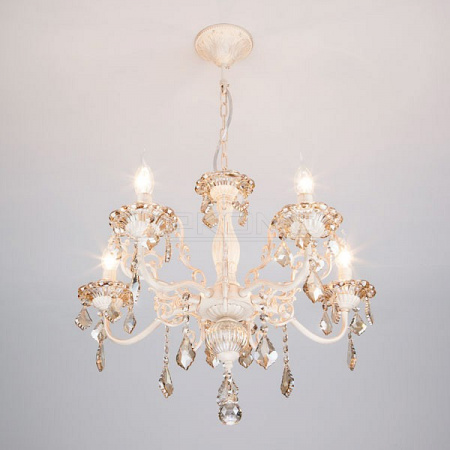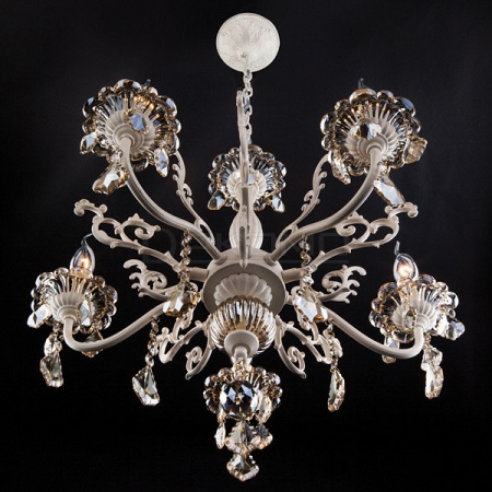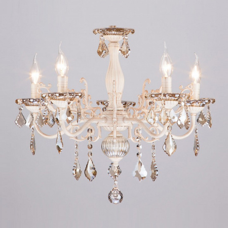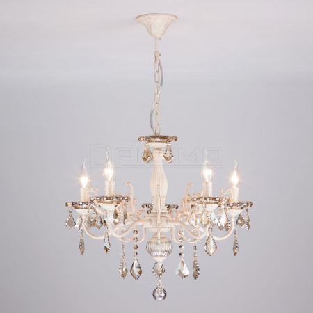 Подвесная люстра Elisha 3281/5 белый с золотом/тонированный хрусталь Strotskis