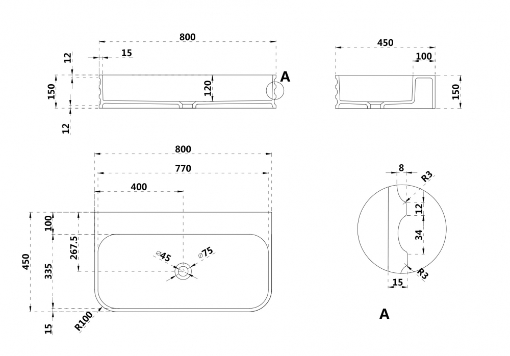 Раковина подвесная ABBER Stein AS2651-0.8 белая матовая