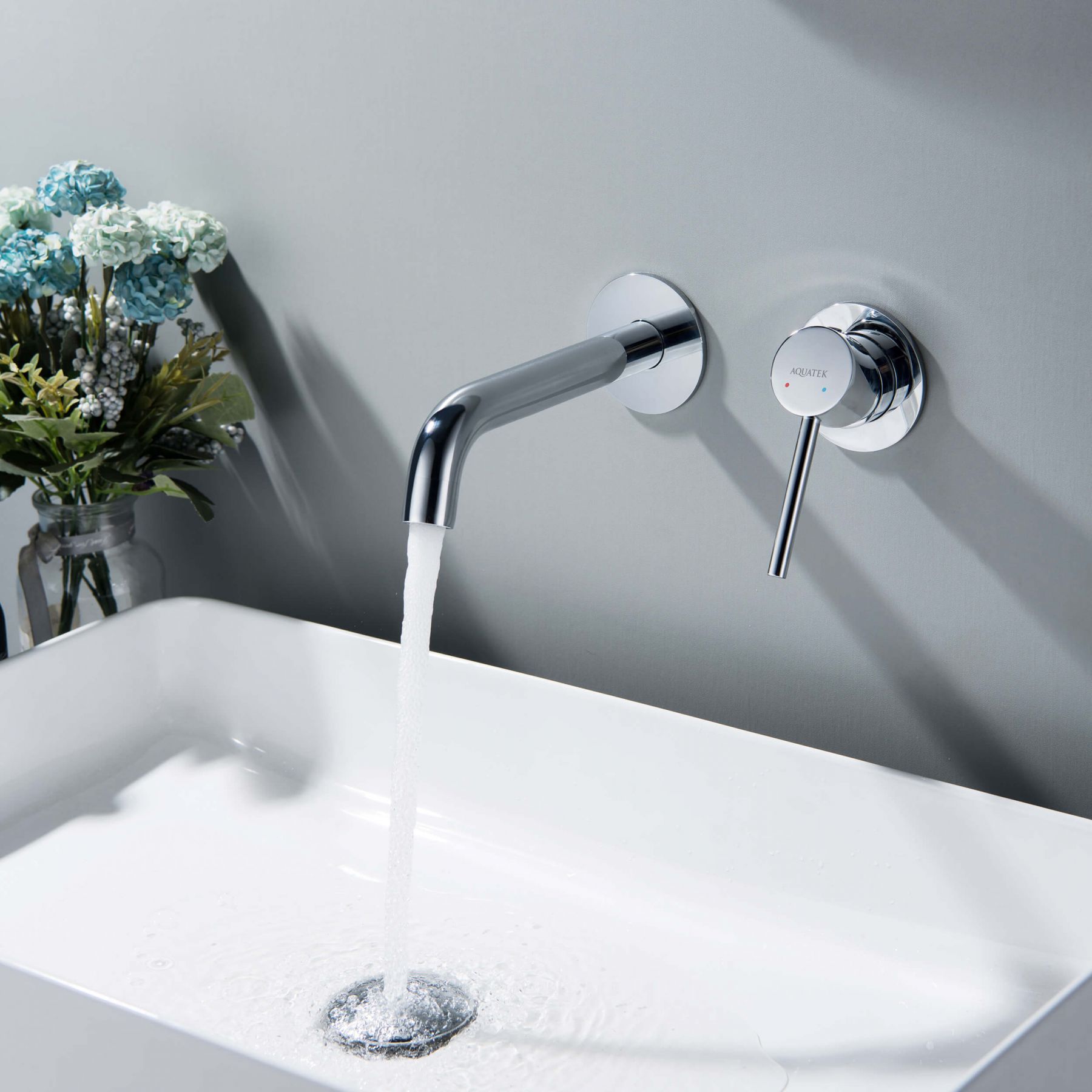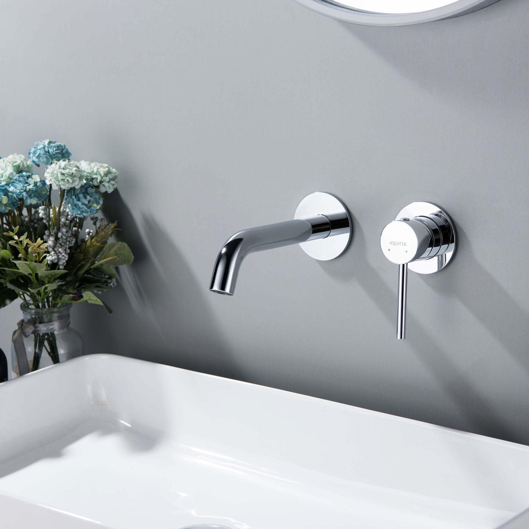 Смеситель для раковины настенный 2 отв. (внешняя и скрытая часть) AQUATEK AQ1313CR ЕВРОПА