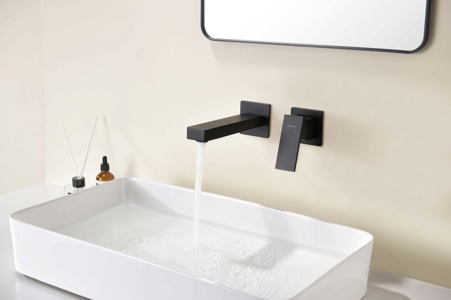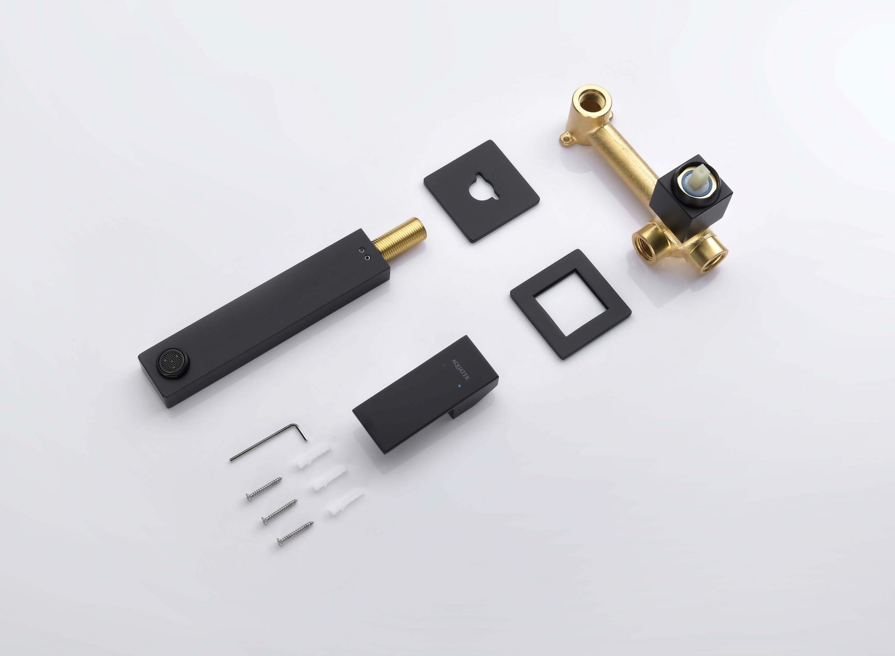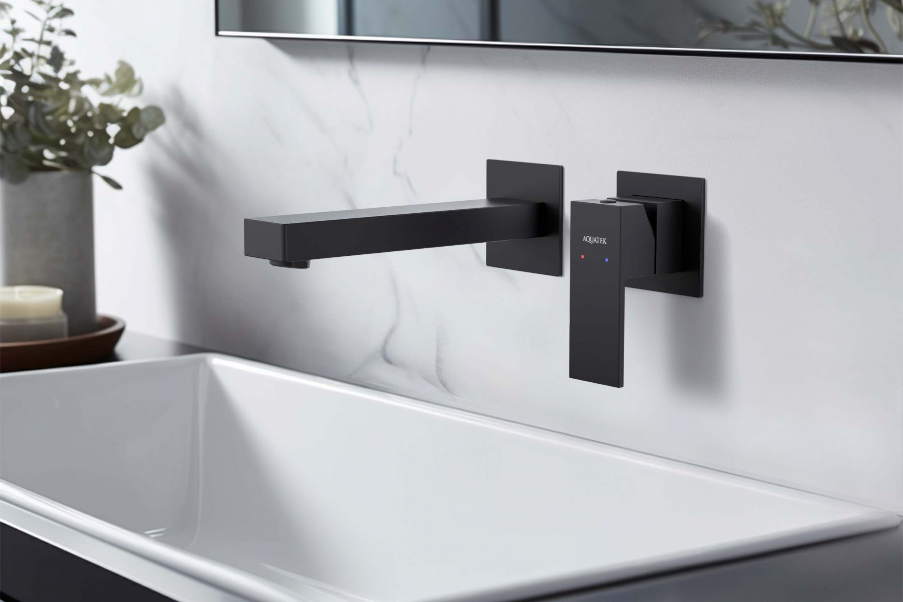 Смеситель для раковины настенный (внешняя и скрытая часть) AQUATEK, матовый черный AQ1613MB ЛИБРА