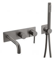 Смеситель встроенный + ручной душ + излив Uno Gun Metall