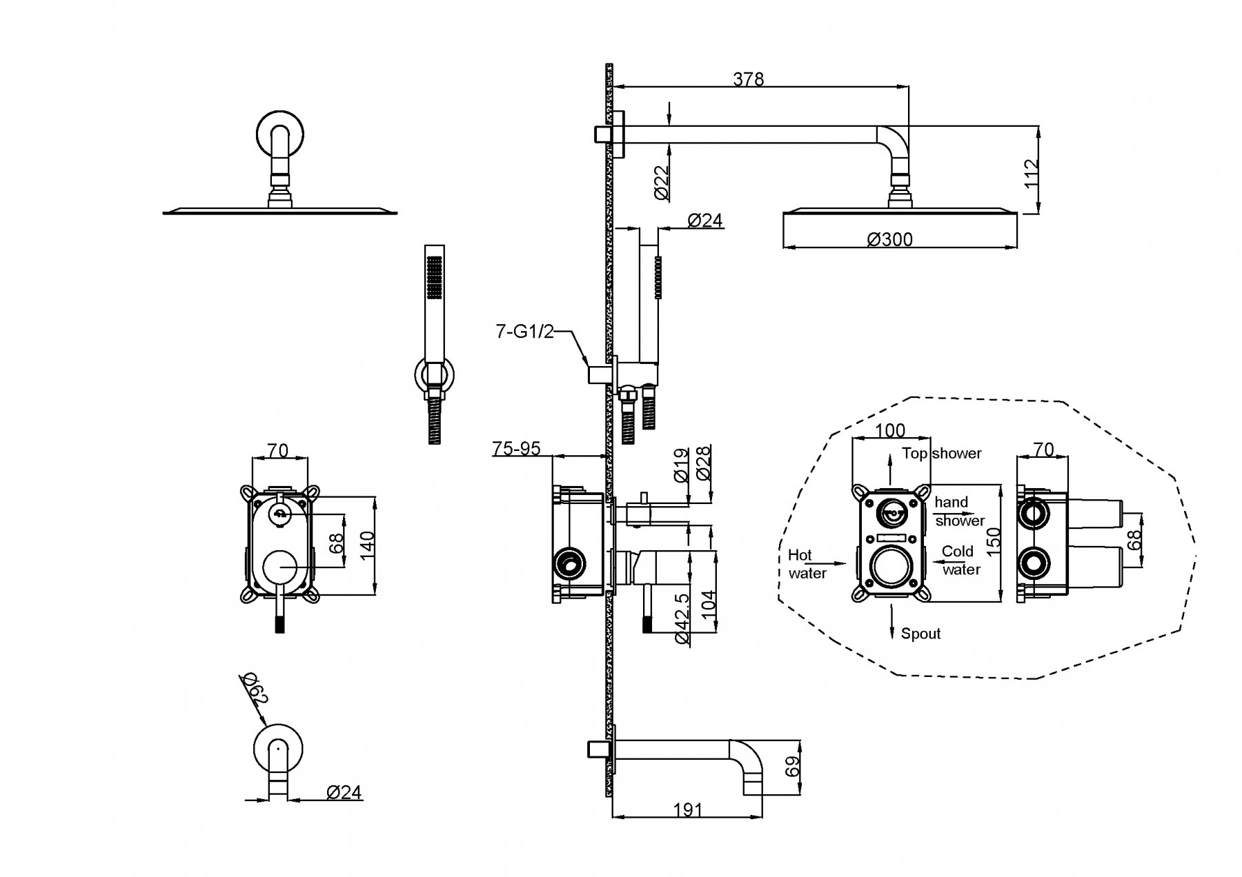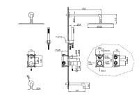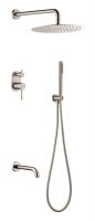 Смеситель встроенный + верхний+ ручной душ и изливом Uno. Nickle Brush