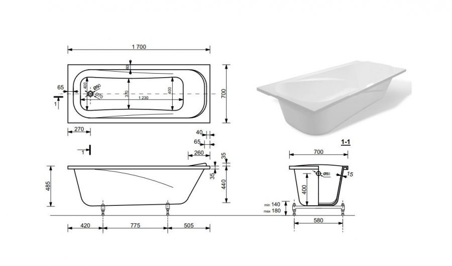 Ванна "Альфа 170А" 1700х700