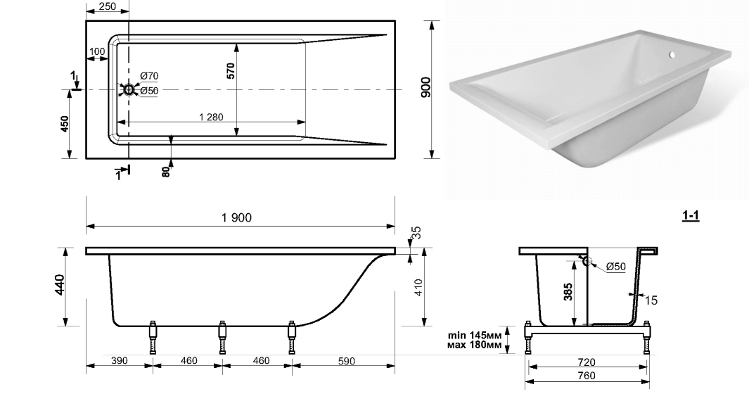 Ванна "Delta 190 silk" 1900х900