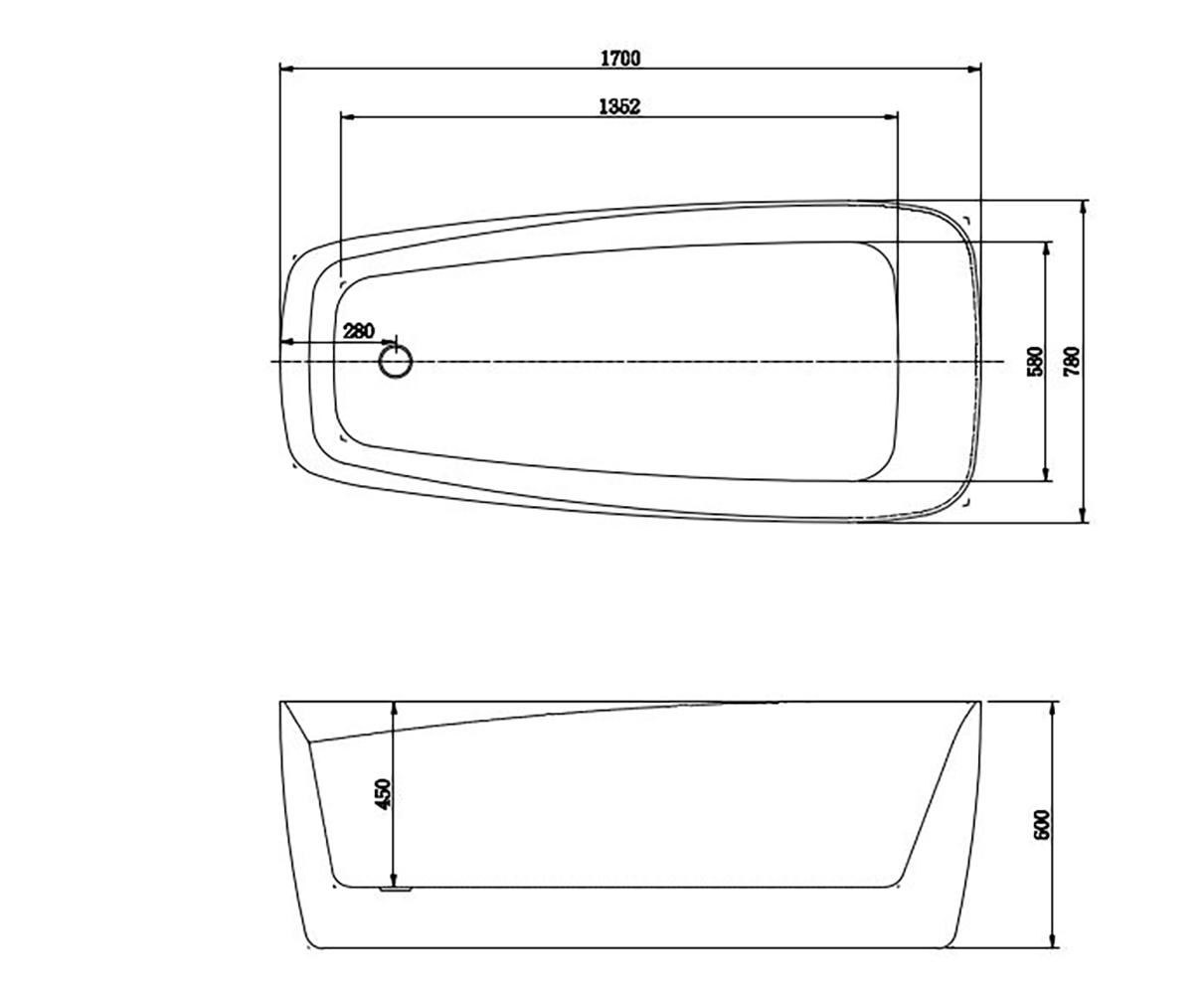 Ванна акриловая,отдельностоящая, AQUATEK AQ-190778 ПАОЛА 1700 * 780 * 600. В Комплекте со сливом и ножками.Цвет: белый глянцевый.