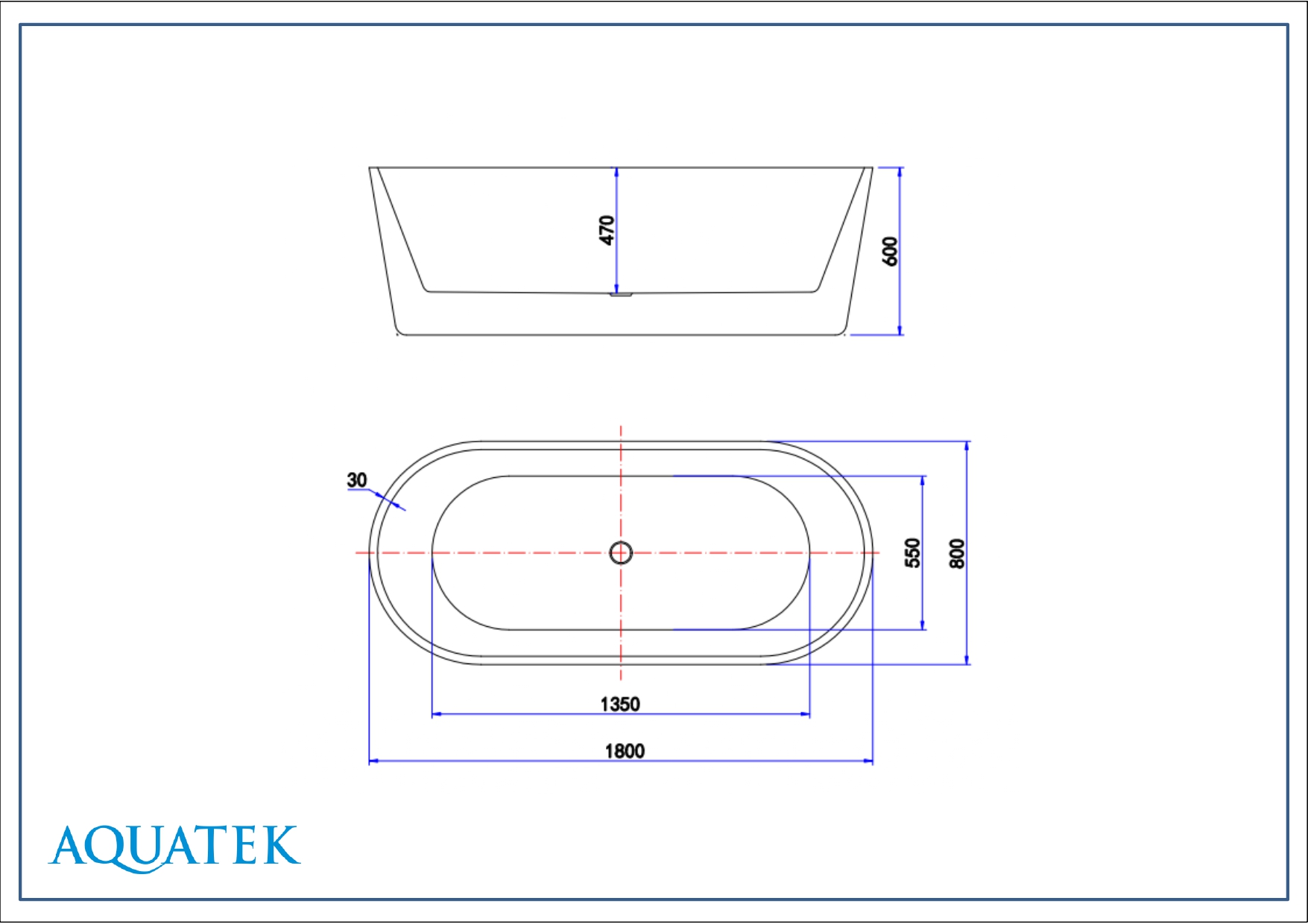 Ванна акриловая,отдельностоящая, AQUATEK AQ-99880 ОВО 1800*800*600. В комплекте со сливом и ножками. Цвет: белый глянцевый.