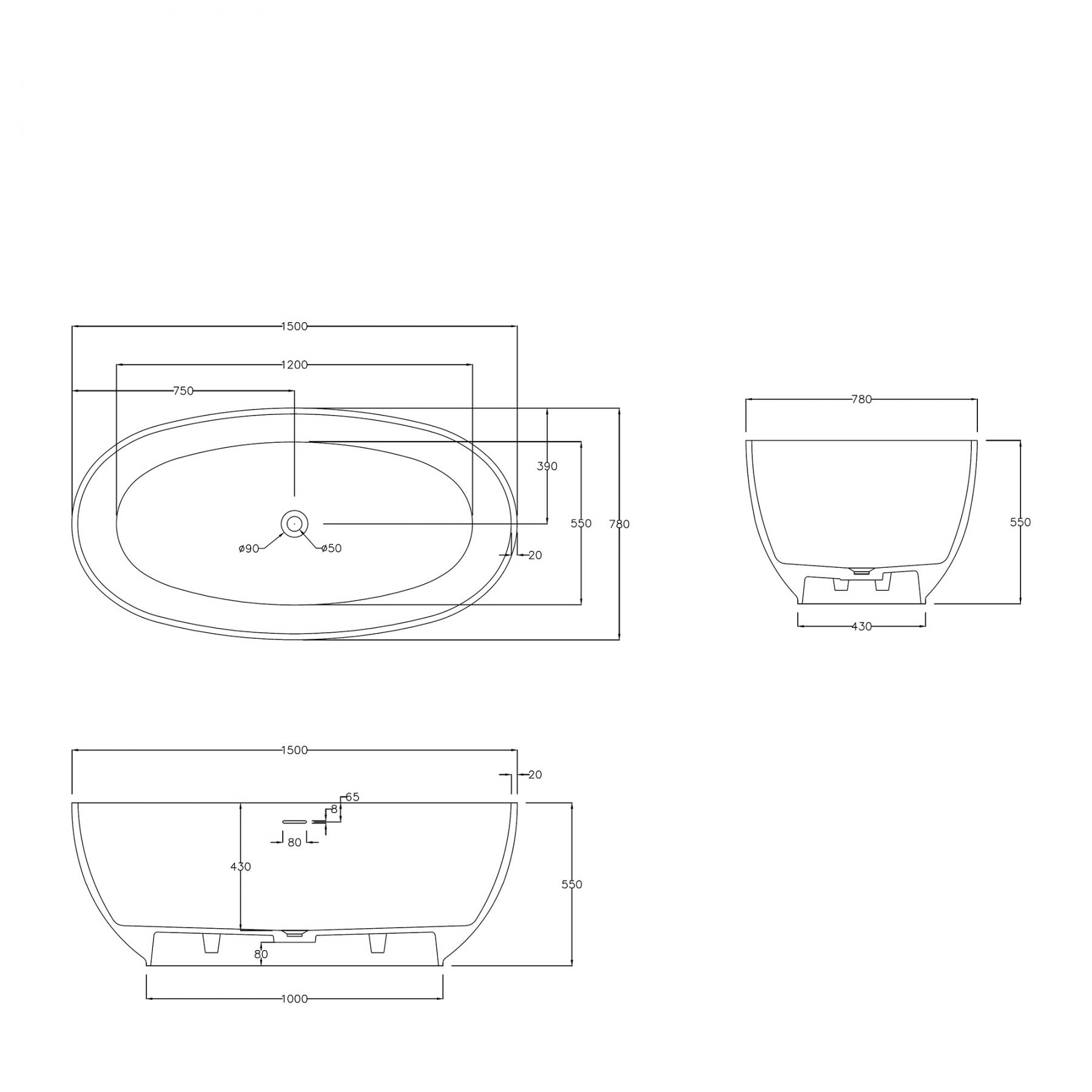 Ванна из искусственного камня ABBER Stein AS9641-1.5 белая матовая